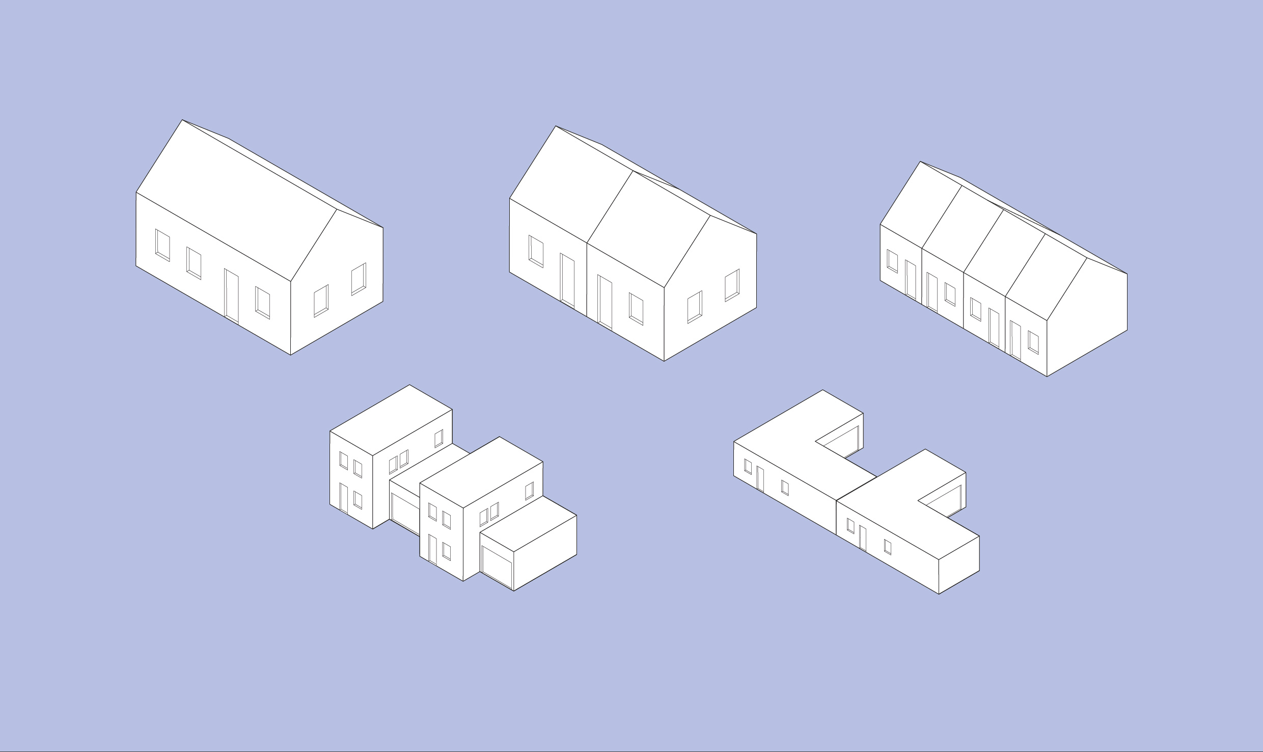 Auf der Ebene des einzelnen Gebäudes bzw. des Grundstücks lassen sich grundsätzlich fünf Gebäudetypen im Einfamilienhausbau in Bezug auf spezifische Merkmale hinsichtlich des Städtebaus, der Wohnqualität und potenzieller Umbau- bzw. Erweiterungsmöglichkeiten unterscheiden: